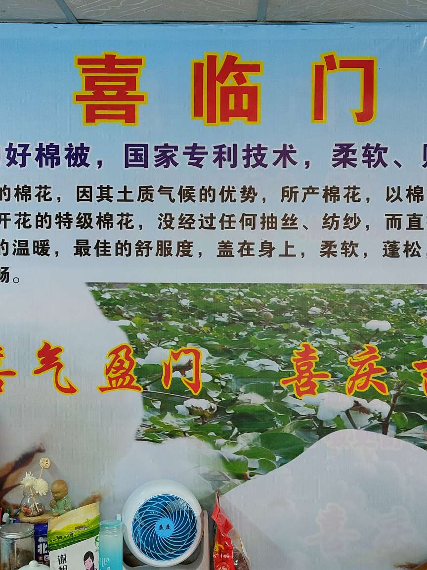 我们是一家做精品棉被的专卖店,二十年老店了,只专业做一床好棉被,专利技术,当年最优质的长绒棉花为源料,用品质为开店做生意的根本,把顾客当家人一样提供.有温暖,舒心,吉祥的一床好棉被。地址,大埔湖寮镇,府前路6号,喜临门综合门市,15119362828.