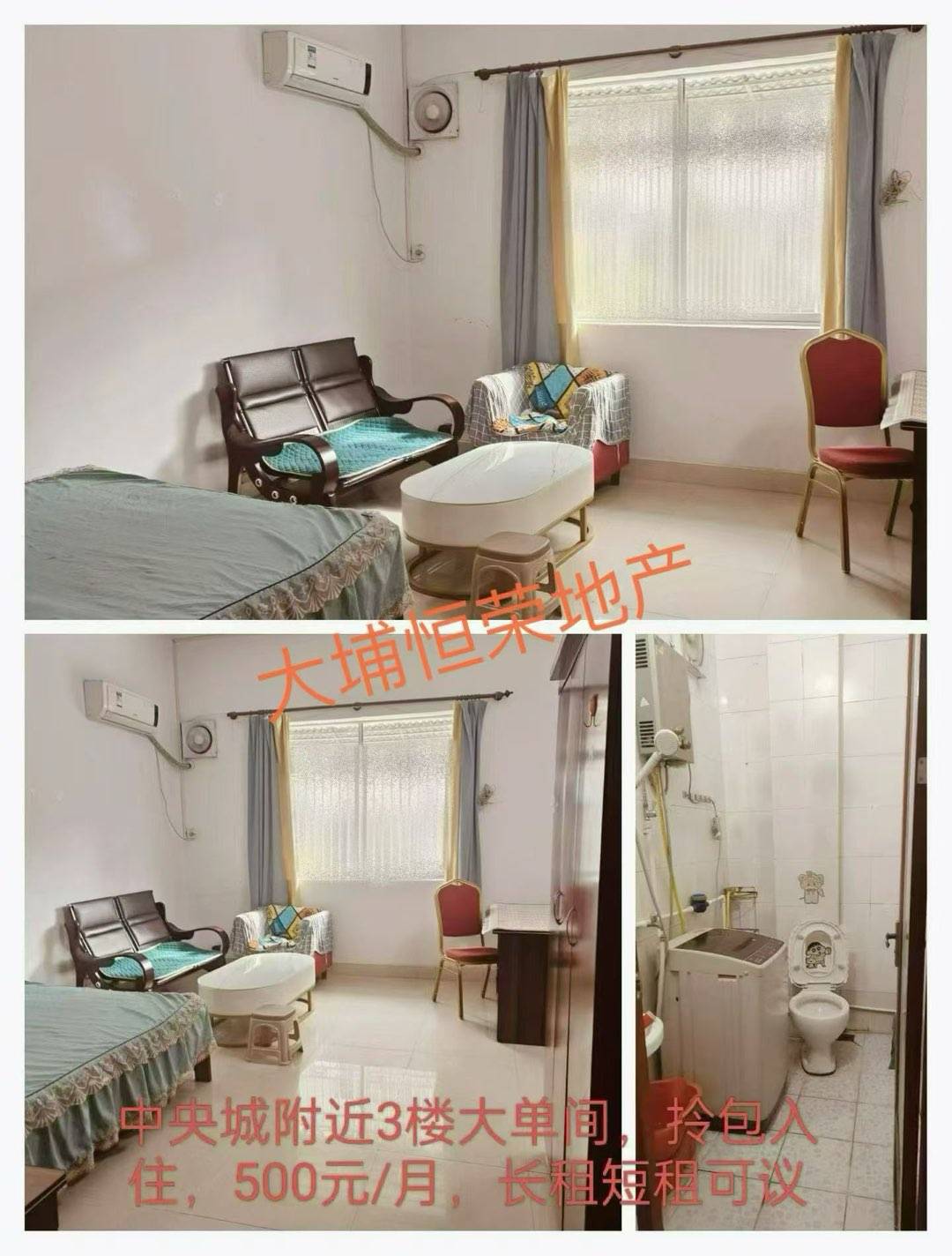 (幸福城附近)步梯3楼,(中央城附近)步梯3楼,多套一房的套间,拎包入住,500-580元。