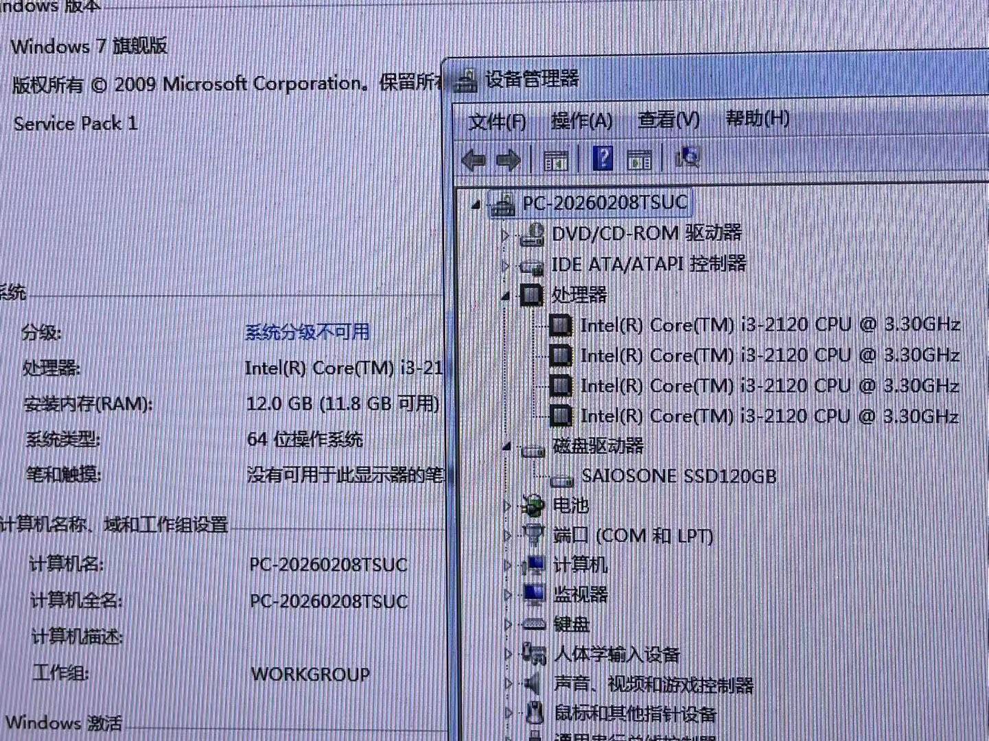 二手电脑390元,原装联想,120固态硬盘,i3处理器,12G内存,dvd刻录机,整套新新,适合炒股办法看剧