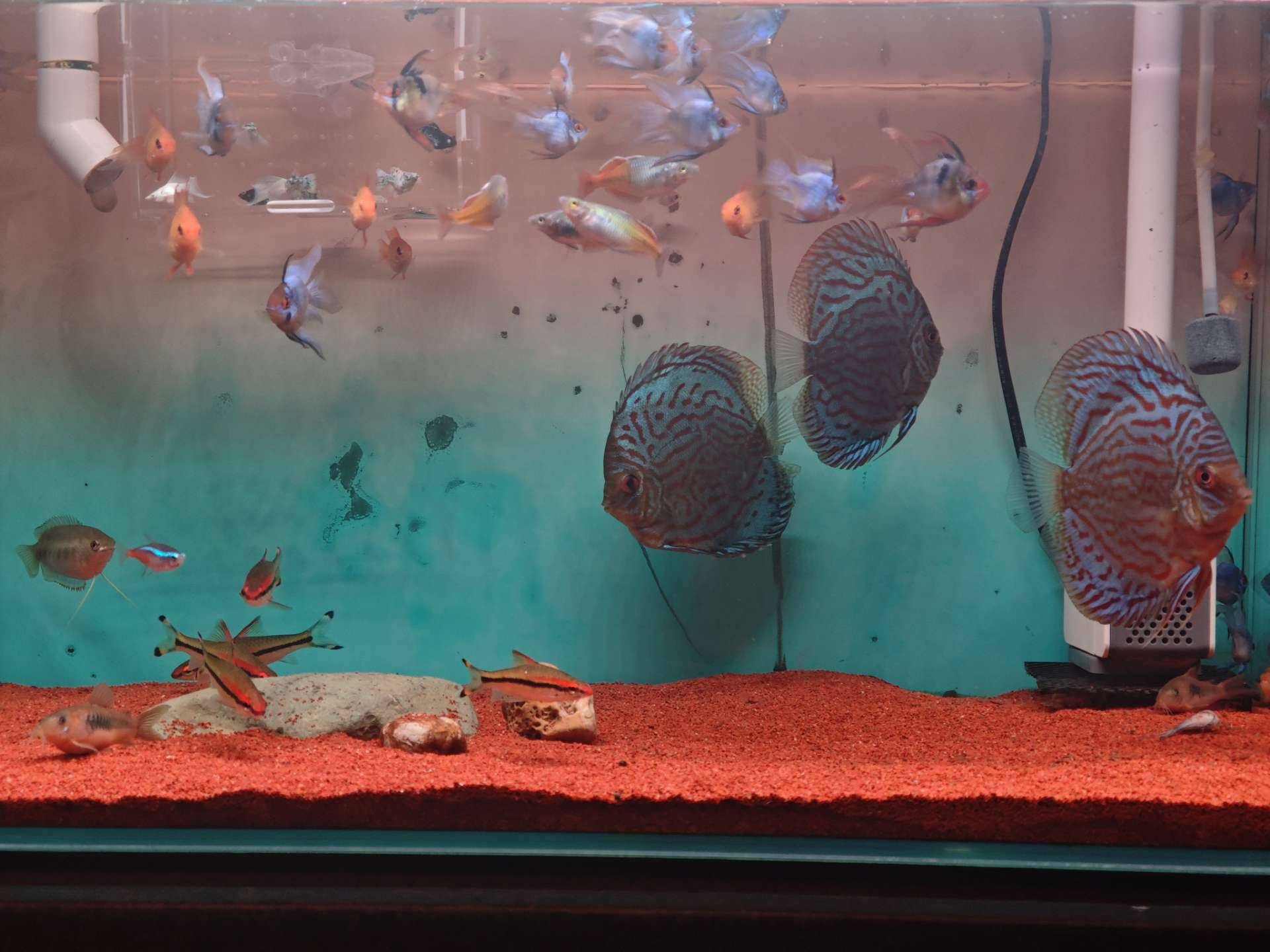 清缸出售三条七彩神仙鱼老虎狗 10厘米样子, 五条大绿背一眉道人,石美人,蓝波阿凡达 送饲料