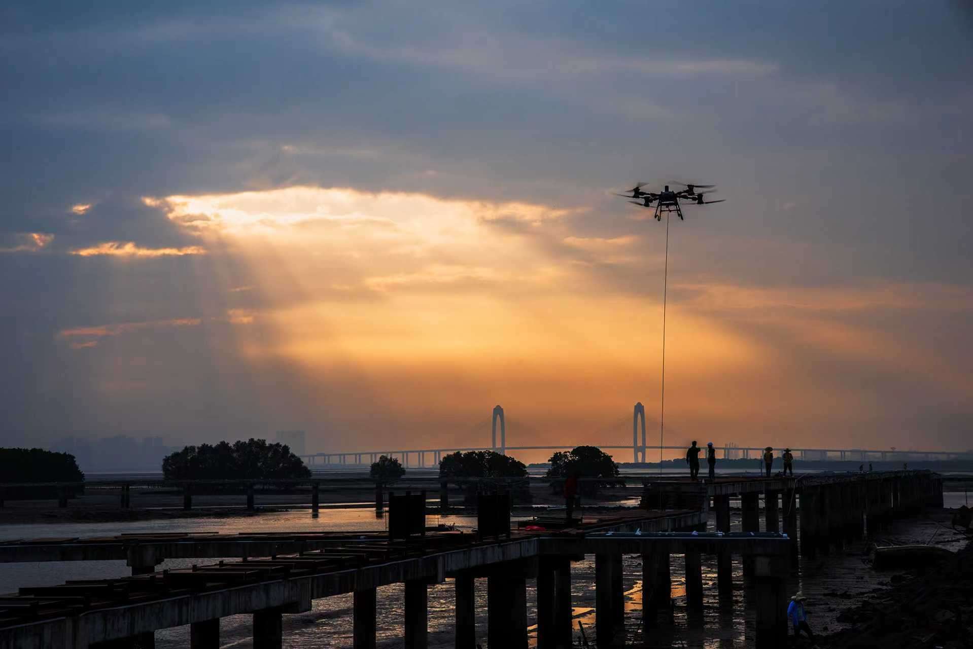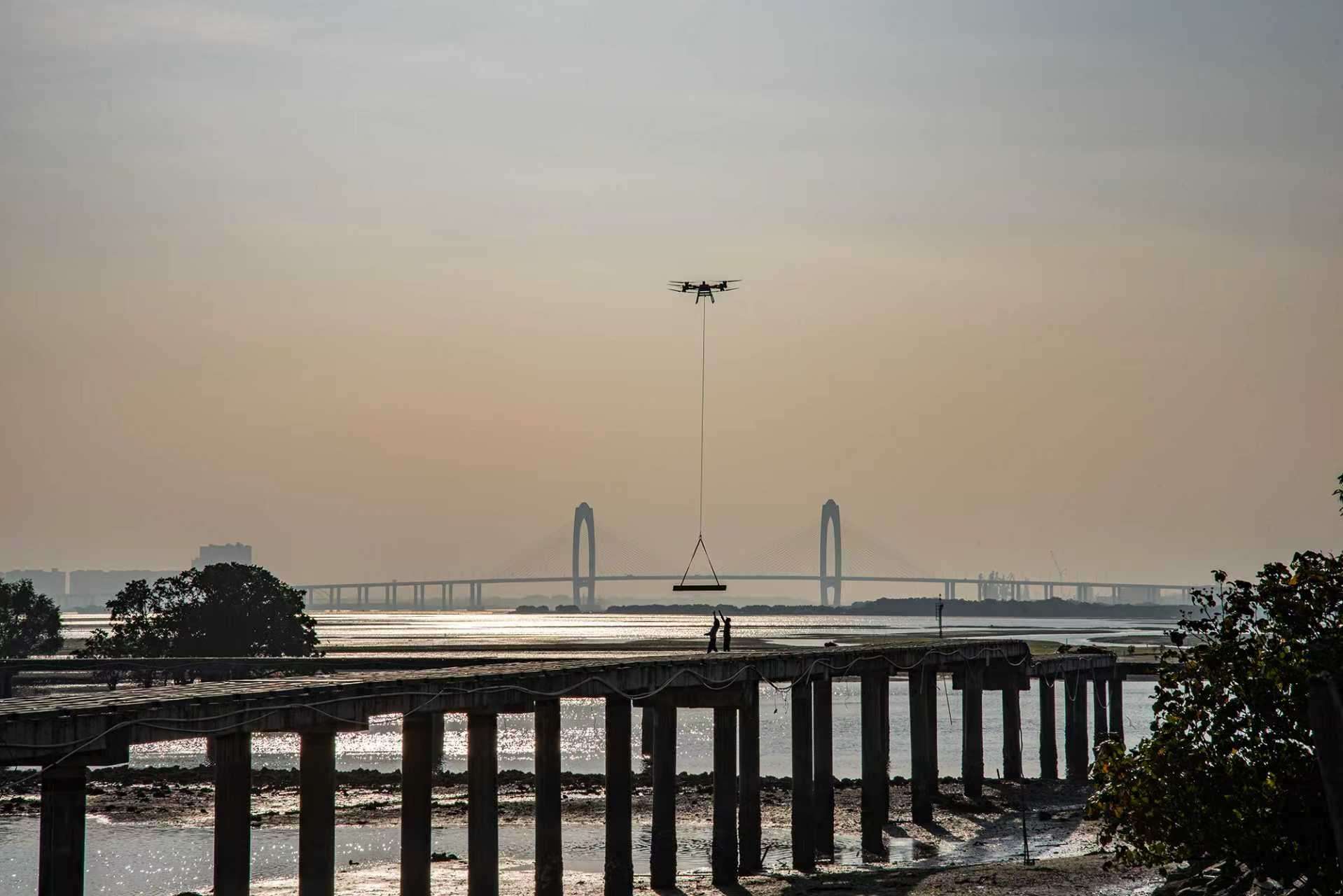 无人机吊运,沙石,木头,竹子,建筑材料