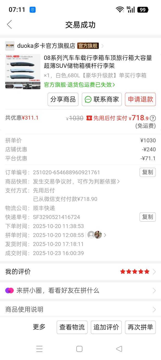 车顶行李箱白色及行李架,买来用过,完好无损,原价8百多,现2百转让,需要联系。