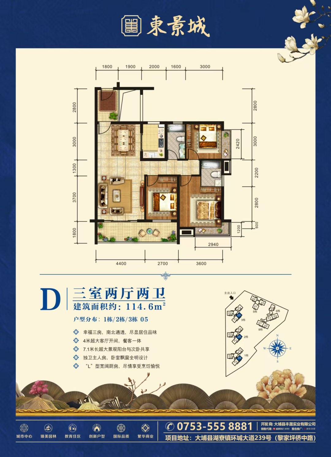 东景城毛坯三房,户型如图,2 楼,还没有做证,证随时可以做,有意向联系