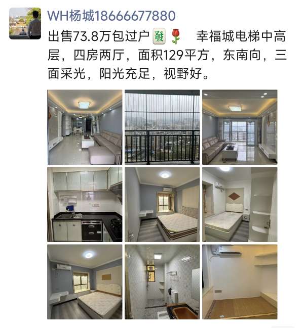 图1首付款5万即可 出售多套大型花园小区电梯四房 首付5万一期中层,四房两厅三卫,约130平方 全湖寮更多房源参考对比加微信☎️18666677880