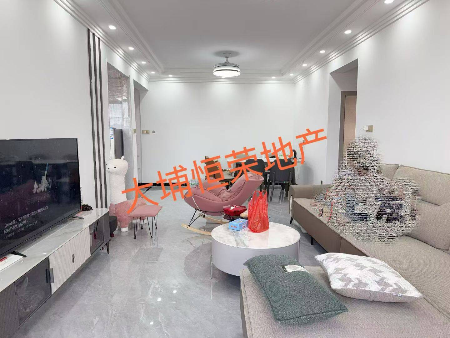 大埔小学附近,富兴豪庭电梯精装修带家私家电,四房二厅二卫出租。租金1200/月一押一租。